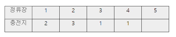 | 충전지를 교환하는 방식의 전기버스를 운행하려고 한다. 정류장에는 교체용 충전지가 있는 교환기가 있고, 충전지마다 최대로 운행할 수 있는 정류장 수가 정해져 있다. 충전지가 방전되기 전에 교체하며 운행해야 하는데 교체하는 시간을 줄이려면 최소한의 교체 횟수로 목적지에 도착해야 한다. 정류장과 충전지에 대한 정보가 주어질 때, 목적지에 도착하는데 필요한 최소한의 교환횟수를 출력하는 프로그램을 만드시오. 단, 출발지에서의 배터리 장착은 교환횟수에서 제외한다. 다음은 1번에서 출발 5번이 종점인 경우의 예이다. 1번에서 장착한 충전지 용량이 2이므로, 3번 정류장까지 운행할 수 있다. 그러나 2번에서 미리 교체하면 종점까지 갈 수 있다. 마지막 정류장에는 배터리가 없다. |