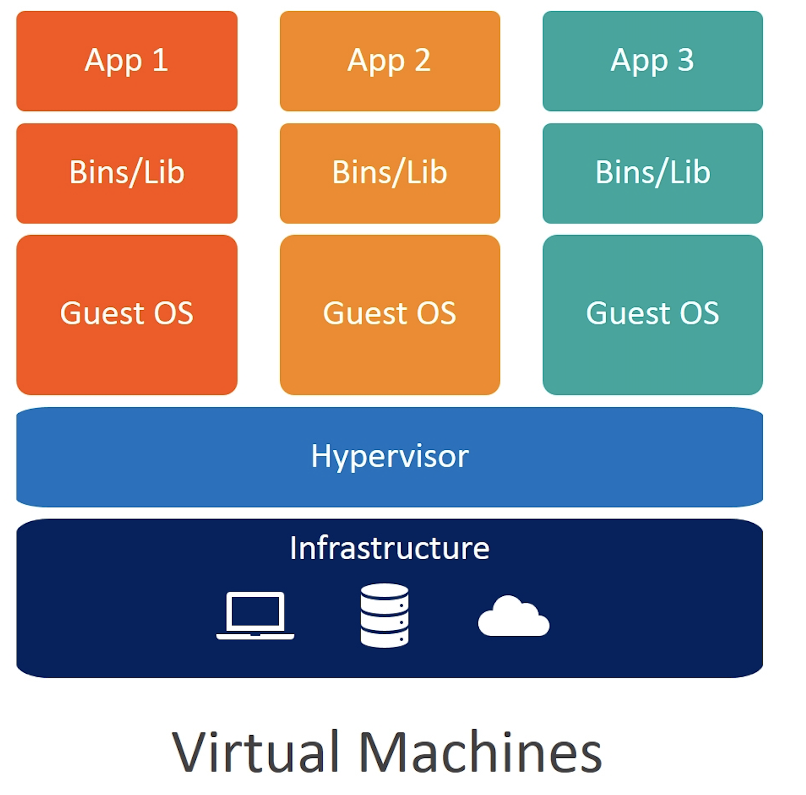 Guest OS를 각각 이용하면서 모든 OS마다 라이브러리, 커널등을 전부 포함하고 있으며 운영체제가 동작하기 위한 기능들이 모두 포함되어 있기때문에 자원의 소모가 크며 느리다. 또한 배포하기 위한 용량이 커지게 된다.