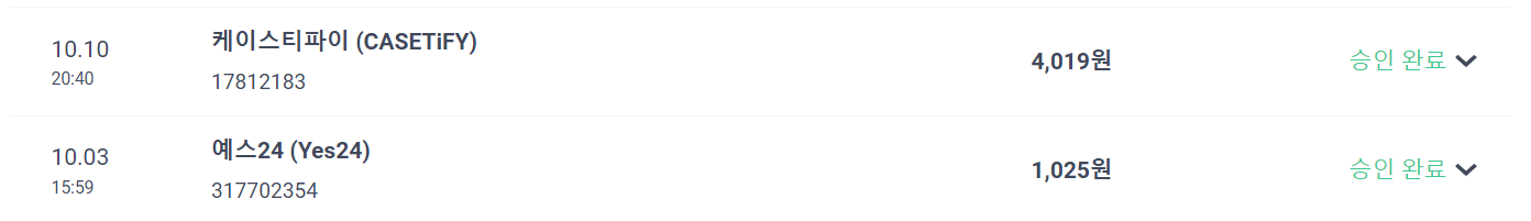 저는 Yes24에서 책을 자주 사는 편인데요. ShopBack을 이용해 Yes24에서도 적립을 받고 ShopBack에서도 추가 적립을 받은 내역입니다. 추가로 핸드폰 케이스를 살때는 저만큼 적립을 받았네요.